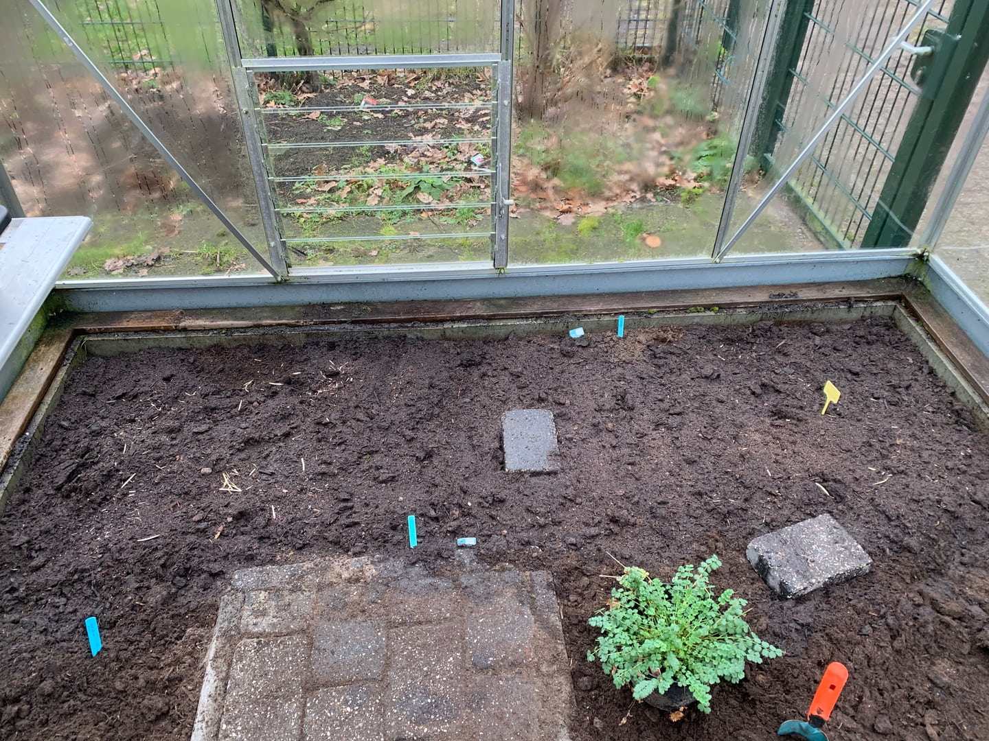 Van geen stap uit de deur vanwege ijzel naar inene zachter weer. Met 7 graden zacht genoeg om de ramen in de kas eindelijk schoon te maken. Een flinke klus en meteen in mijn oren geknoopt dat ik het in het vervolg gewoon weer braaf direct aan einde kas seizoen moet doen.