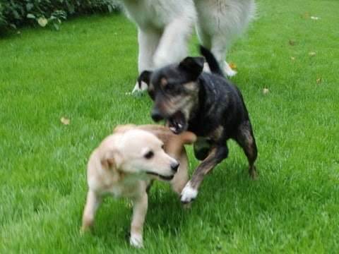 Piglet daarentegen pikt het konijn zo in en laat zien hoe het moet. Een miniatuur labrador. Ze is zo leuk.